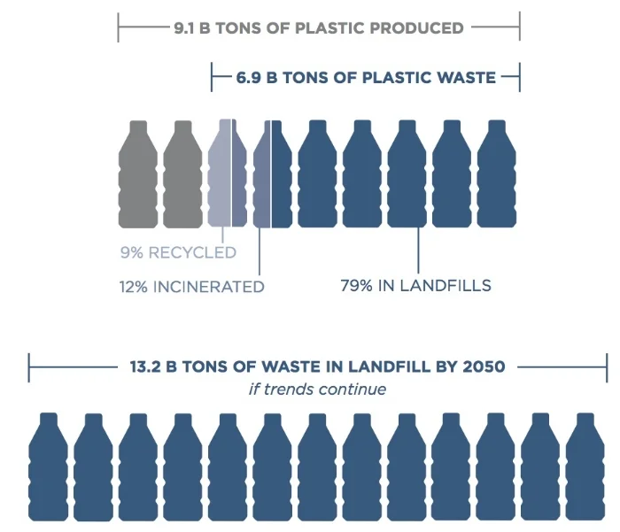 By 2050, 13.2 billion US tons will enter landfills or the environment if current production and waste management trends continue.